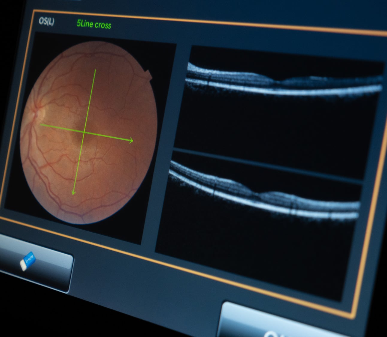 Ocular scanning (OCT) can detect issues below the surface of the eye. This scan can diagnose serious eye problems including glaucoma, diabetes and macular degeneration, sometimes long before they become apparent. The OCT offers information that was previously only possible from a hospital visit. It's an advanced eye scan for people of all ages. Similar to ultrasound, OCT uses light rather than sound waves to illustrate the different layers that make up the back of the eye.